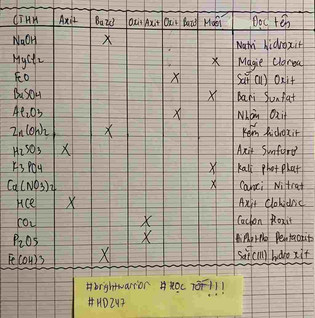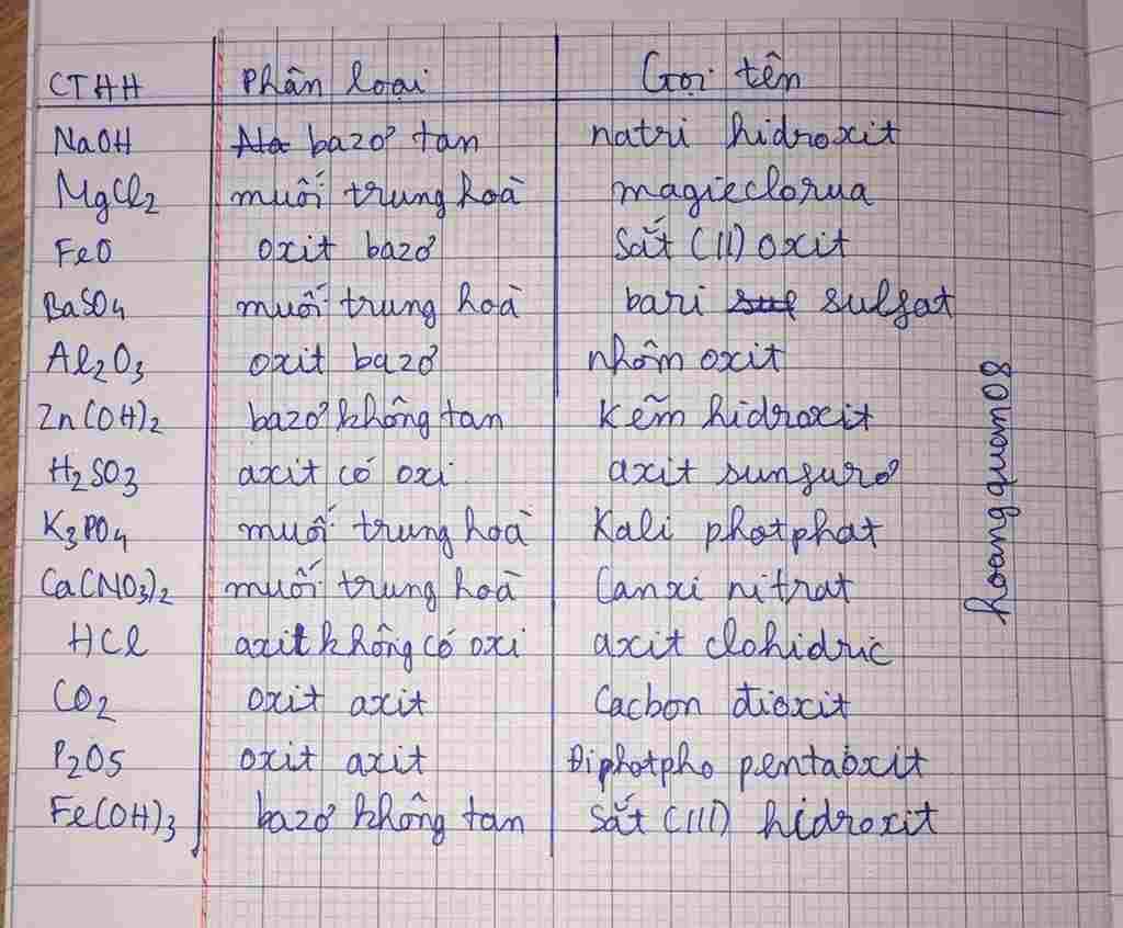 Hóa học Lớp 8: Cho các hợp chất có công thức hóa học: NaOH, MgCl2, FeO, BaSO4, Al2O3, Zn(OH)2, H2SO3, K3PO4, Ca(NO3)2, HCl, CO2, P2O5, Fe(OH)3. Hãy cho biết mỗi hợp chất trên thuộc loại hợp chất nào? Gọi tên mỗi hợp chất đó., giúp em giải bài hóa này ạ, em cảm ơn thầy cô và các bạn nhiều.