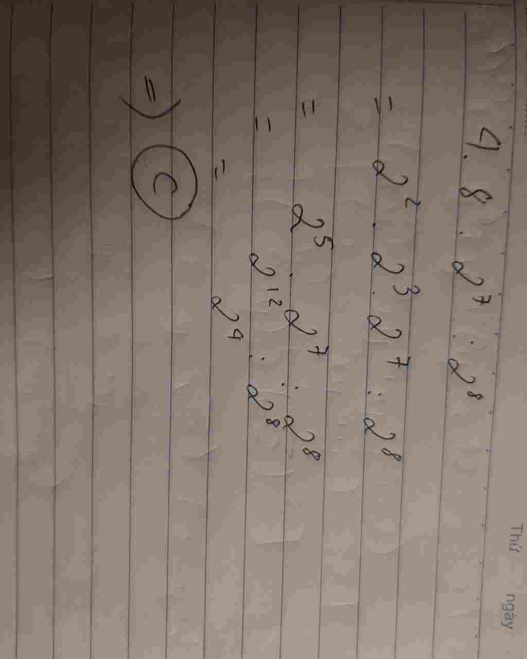 Toán Lớp 6: nếu đưa 4 . 8 . 2 mũ 7 chia 2 mũ tám về lũy thừa có cơ số bằng 2 thì số mũ của lũy thừa đó bằng : A 7 , B 2 , C 4 D 16