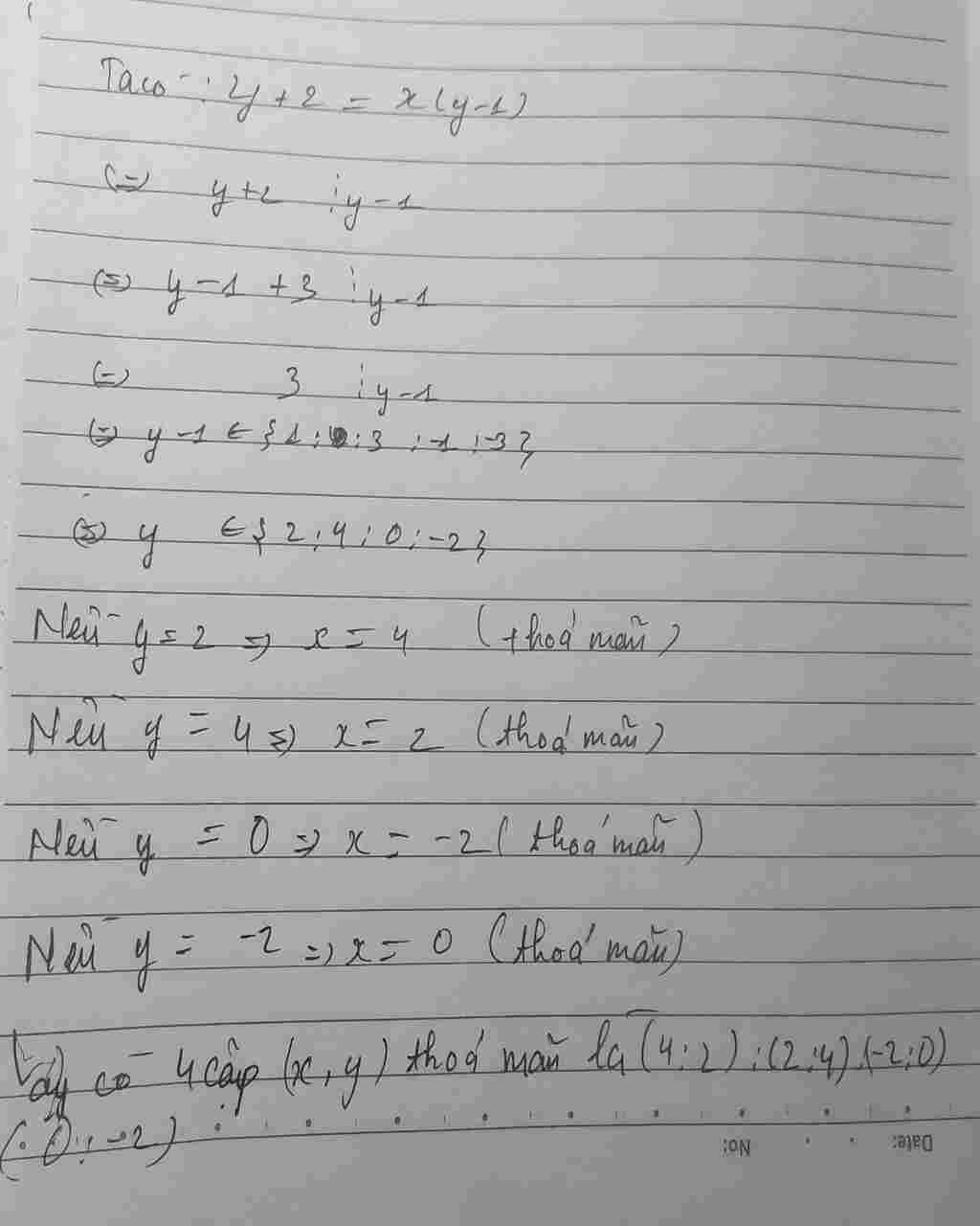 Toán Lớp 6: tìm các số nguyên x, y thỏa mãn x(y-1) = y+2