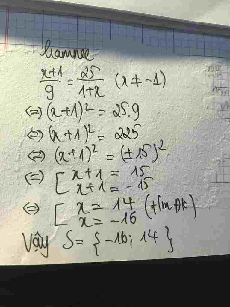 Toán Lớp 7: x +1/9 = 25/1+x (x ko thuộc -1)