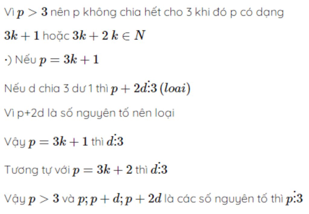 Toán Lớp 7: Cho số nguyên tó p sao cho p+d;p+2d đều là số nguyên tố