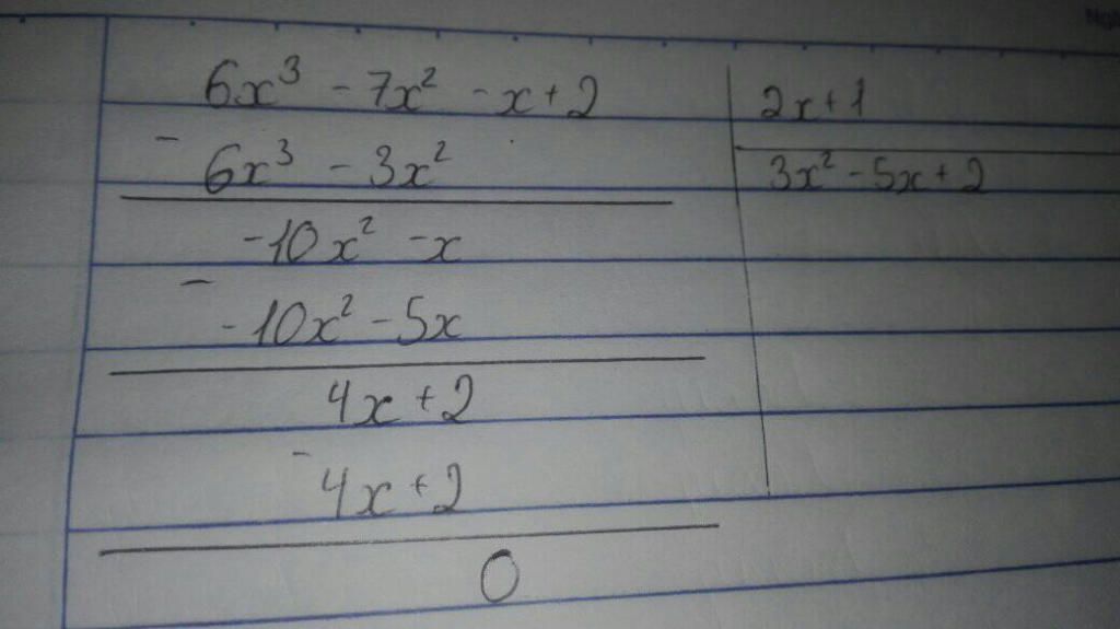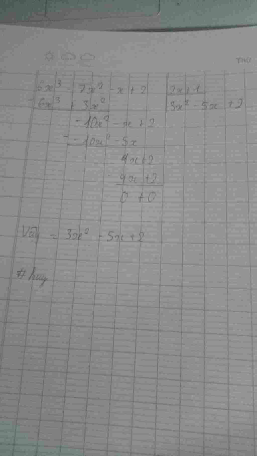 Toán Lớp 8: ( 6x^3 – 7x^2 – x + 2 ) : ( 2x + 1 )