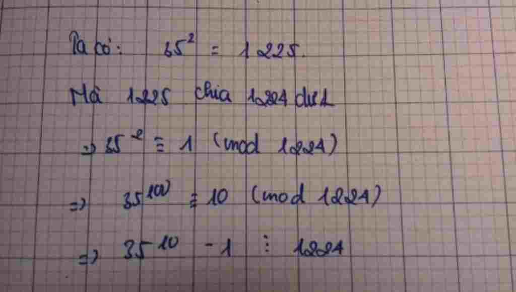 Toán Lớp 8: CMR: 35^10-1 chia hết cho 1224