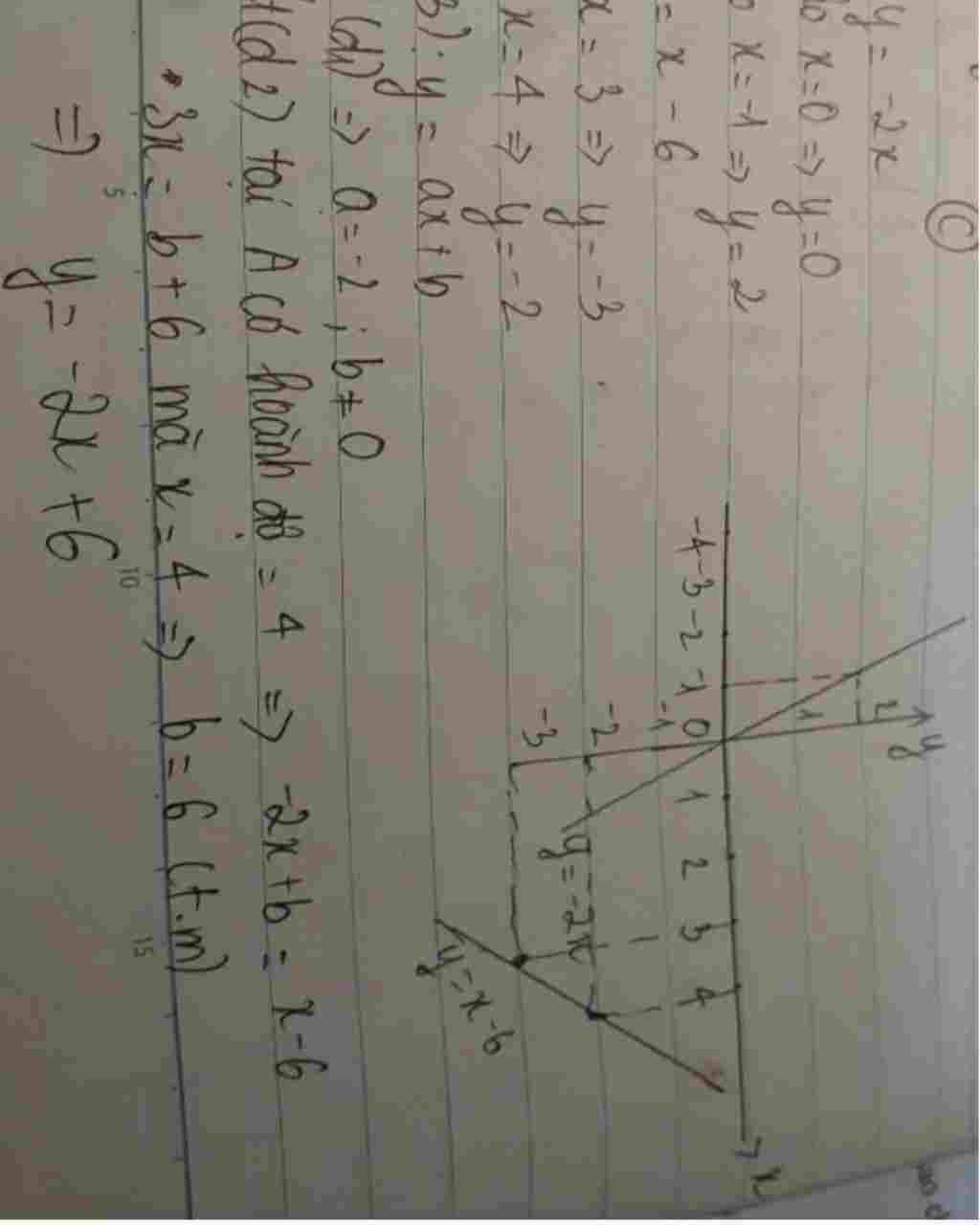 Cho hàm số y = – 2x có đồ thị (d1) và hàm số y = x – 6 có đồ thị (d2)